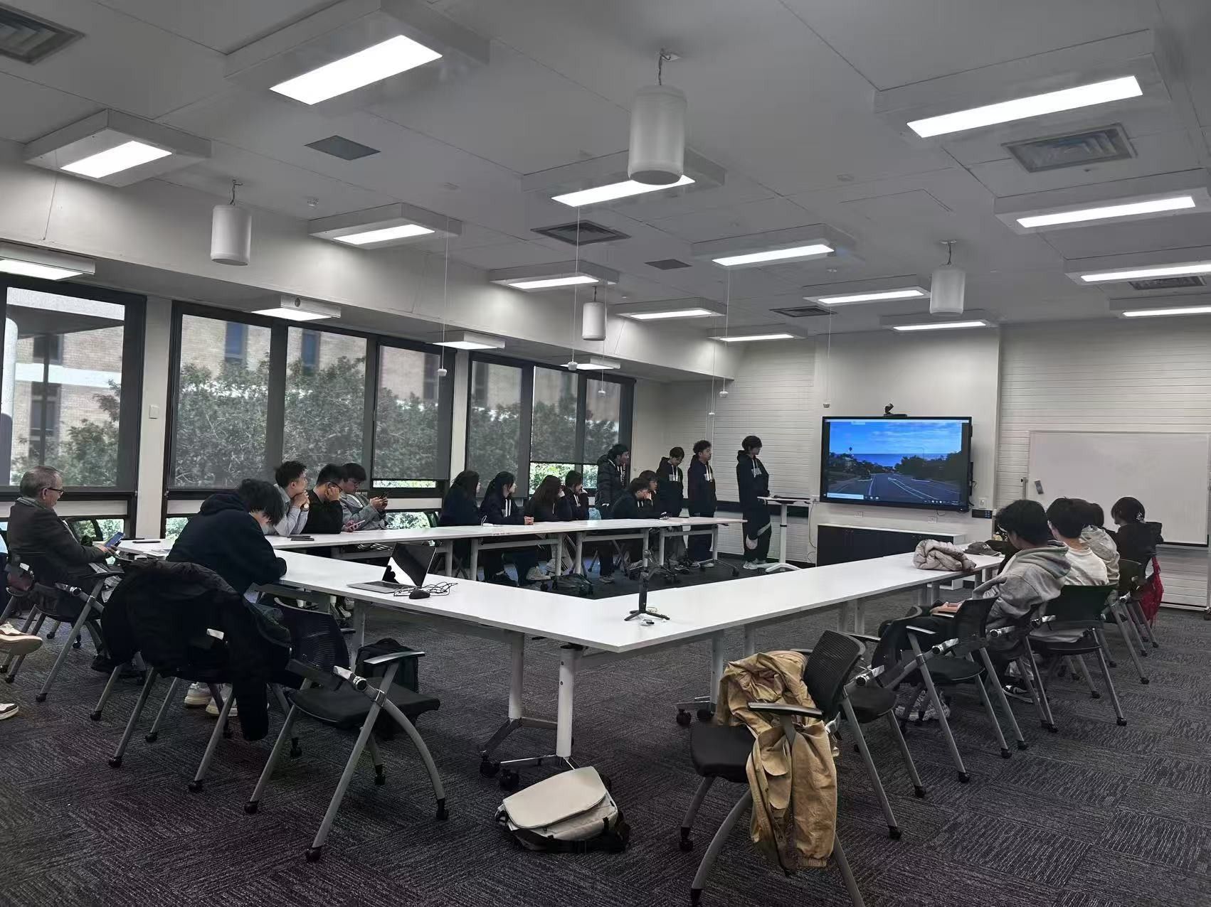 学生的学习汇报活动。通过聆听学生的研习成果展示,教师们更好地了解了学生在海外的学习状况与成长轨迹,为后续优化人才培养方案提供了第一手参考。